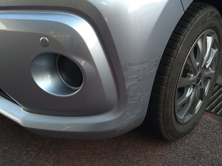 外装状態小さな傷や凹みがあるフロントバンパー 左側