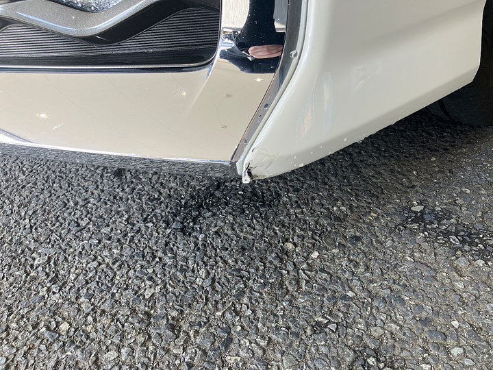 外装状態目立つ傷や凹みがあるフロントバンパー 左側