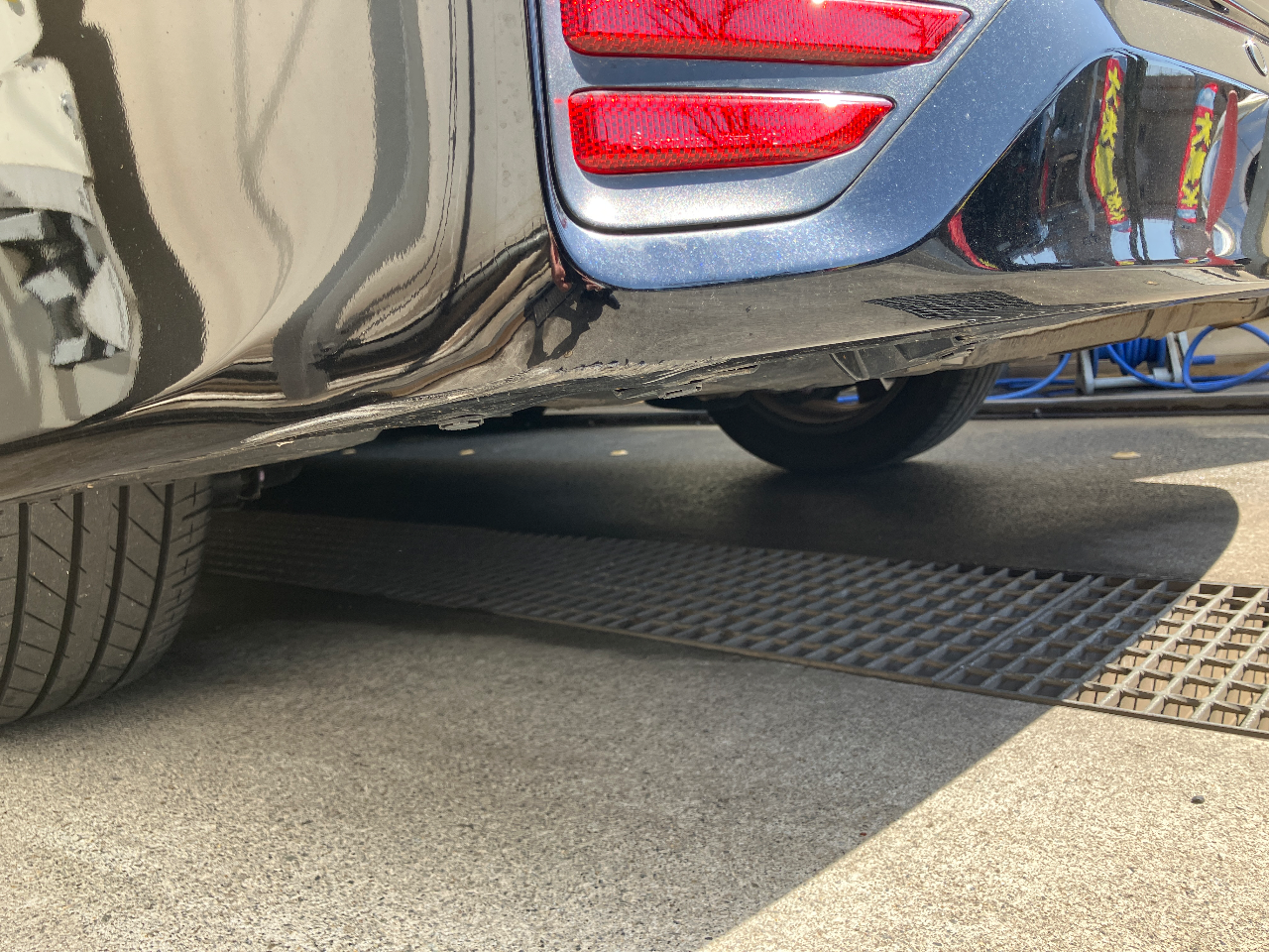 外装状態目立つ傷や凹みがあるリアバンパー