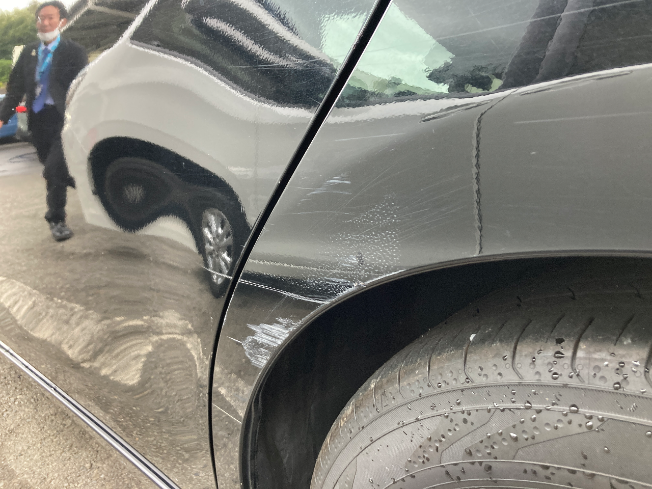 外装状態目立つ傷や凹みがあるリアバンパー 左側