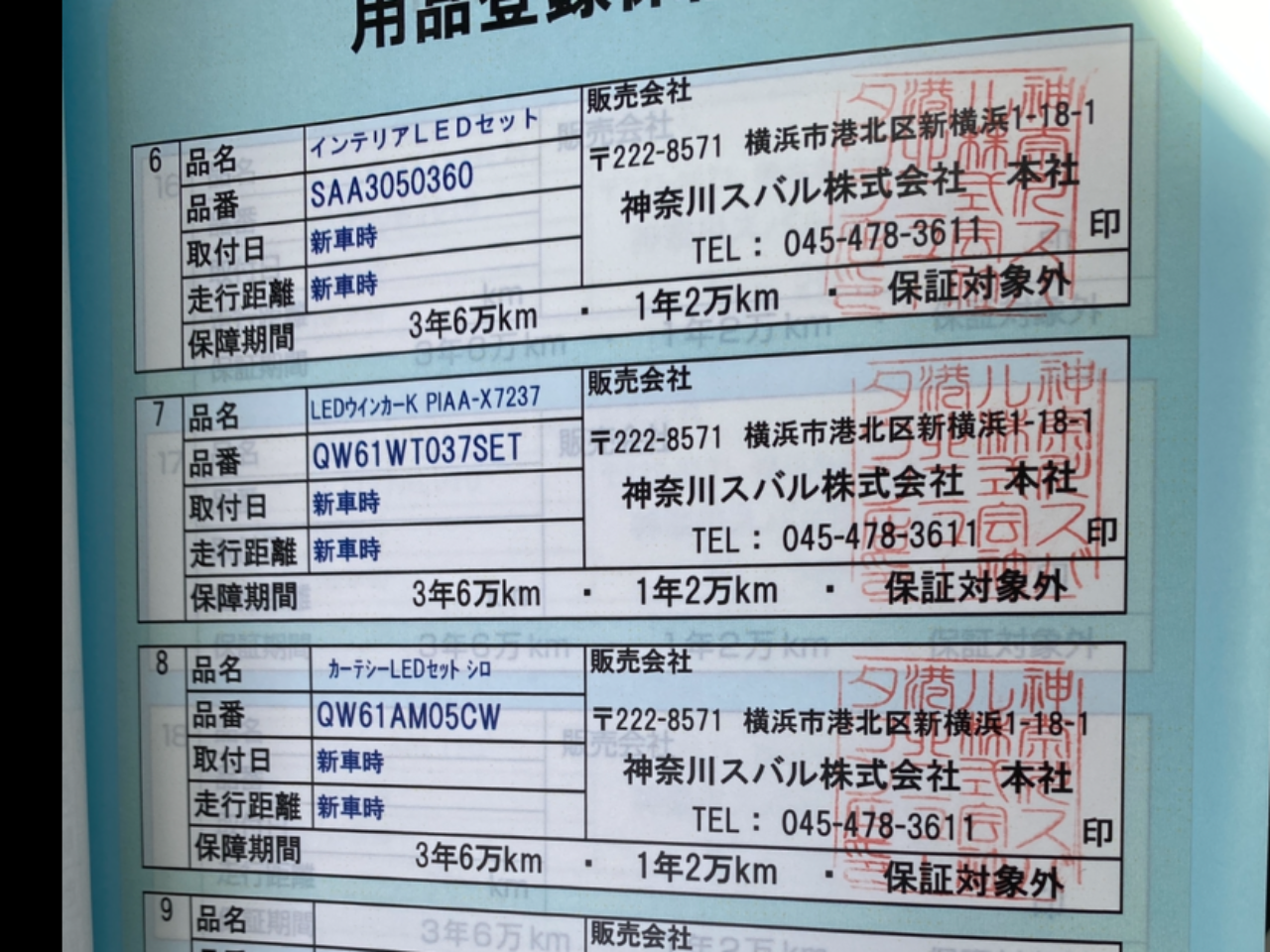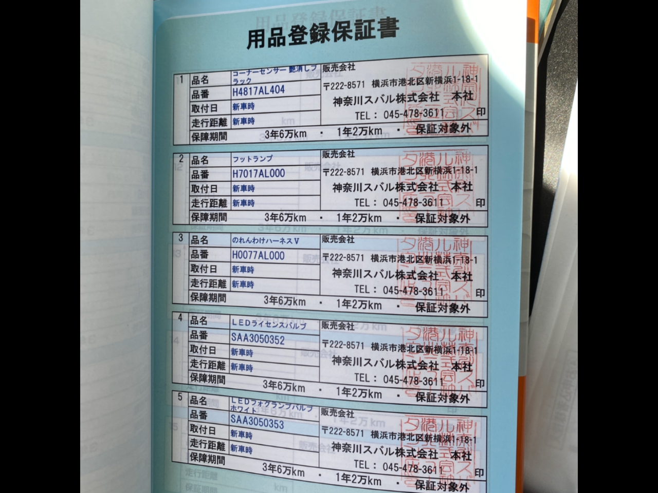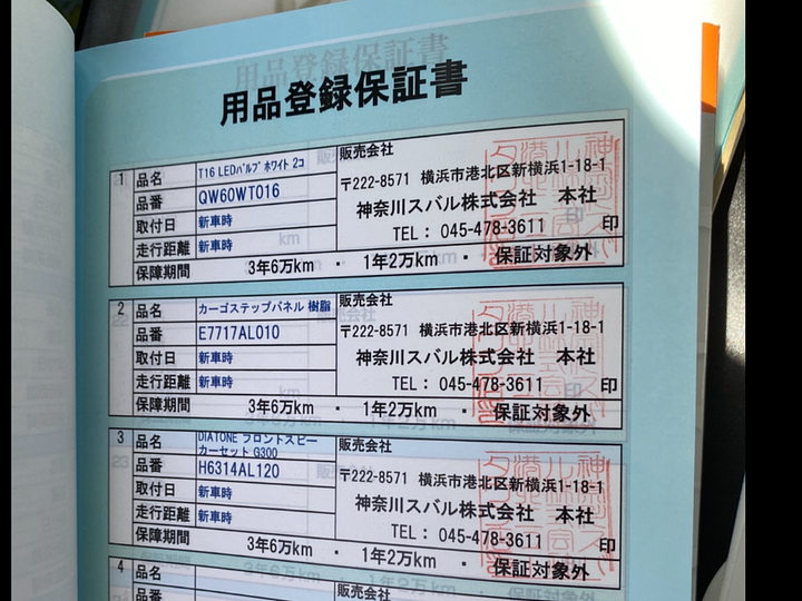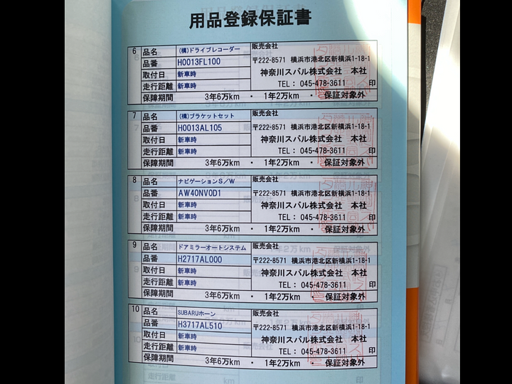 その他のオプションパーツについては、用品登録保証書の記載内容をご確認ください。