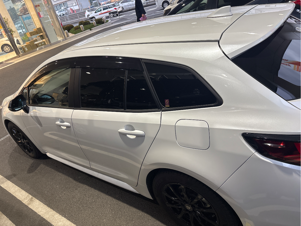 画像はスタッドレスタイヤ、社外ホイールですが、純正ノーマルタイヤ、ホイールに戻します。