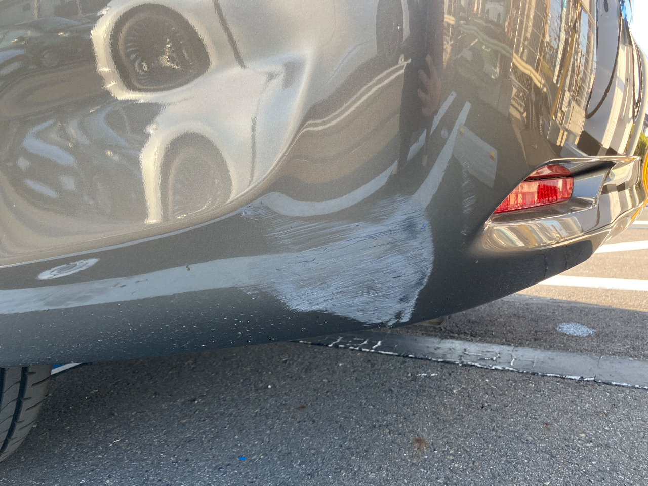 外装状態目立つ傷や凹みがあるリアバンパー 左側