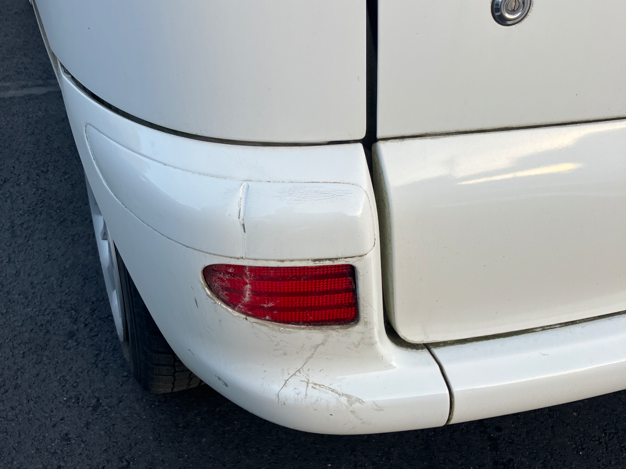 外装状態目立つ傷や凹みがあるリアバンパー