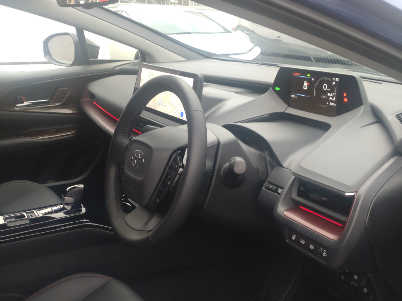 また内装は、ドアまわりに木目のパネル、センターコンソールまわりはピアノブラックに、シフトノブは本革とピアノブラックのコンビに変えています。