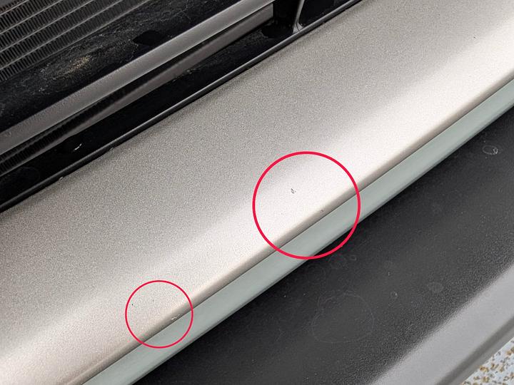 フロントガラス、バンパーに飛び石と思われるキズが数箇所あります。