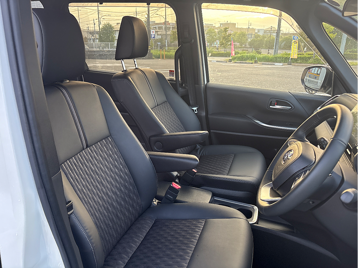 両側電動スライドドア、バックモニター、衝突被害軽減ブレーキ、オートクルーズなど、安全装備も充実しており、広く開放的な車内空間とあわせて、ファミリーカーとしての利便性が非常に高いです。