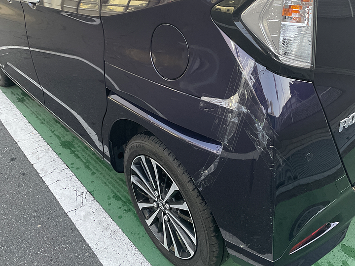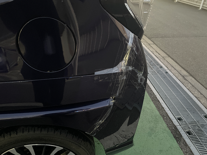 リアバンパー、車体左側に大きな傷・凹みがあるのでご確認の上、修理が必要かどうかご判断ください。