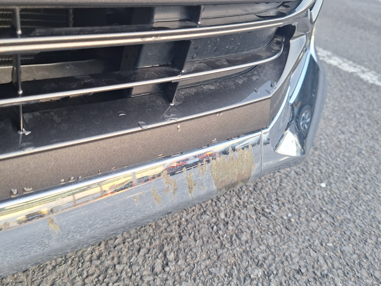 外装状態目立つ傷や凹みがあるフロントバンパー