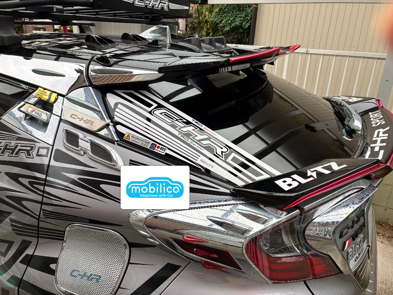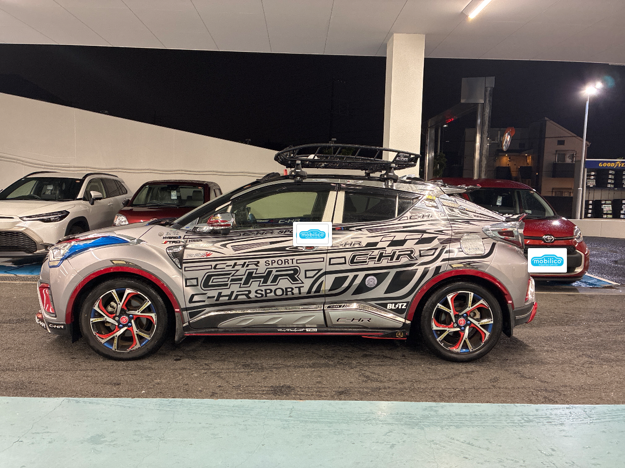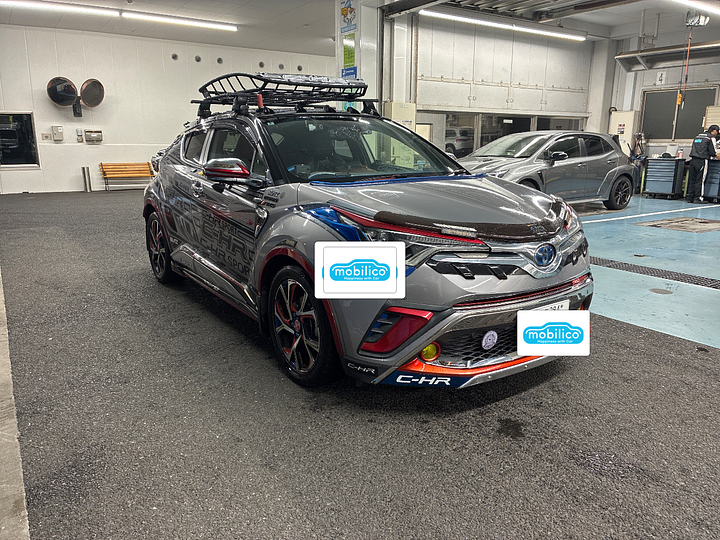 クルマを新しく買い替える為、下取り目的で出品しました。主に買い物等の近場で乗っていて、週に2〜3回ほど利用しています。遠出はあまりしていないので走行距離は2.6万kmと使用感はあまりありません。禁煙車で内装も綺麗です。外装にほとんど傷はなく、左側メッキドアミラーのレッドの部分に1センチほどの塗装が剥がれていますが、車体はキレイだと思います。キレイに直したのでよく見ないと分かりませんが、右フロントフェンダー後方上の擦り傷を自分で10cmほど塗装しました。販売店オプションのナビやドライブレコーダー、ETCがついていて、予備にドライブレコーダーを2台増設しています。バックモニター、コーナーセンサー、オートクルーズ等の安全装備もあります。シルバーのボディーに貼ってあるブラックのステッカーは、C-HR用の3種類のデザインのものを取り寄せ、色々な組み合わせを考えて貼りました。TRDのドアスタビライザー、TRDエアロバイザー、ボルツのエンジン上部のストラットバー、フレームにGRブレース、下まわりに赤のフロントスタビライザーを取り付けいます。ルームランプやバックランプは白のLEDの明るいライトに交換してあります。フォグランプは社外品のイエローに光るようにするカバーをユニットにつけてあり、社外のLEDで純正よりすごく明るくなっています。ホーンはノーマルのシングルから、レクサス純正のダブルホーンに交換してあります。助手席下には、ケンウッドのサブウーファーシステムユニットを設置しています。スピードメーター左横に音量調整用の純正ボリュームが取り付けてあります。フロントドアの上には小型のケンウッドウーファー用スピーカーもあります。また、後部座席の上に中高音用スピーカー、トランクルームのボード上には、置き型スピーカーを増設しています。リアドア内のスピーカーは、パイオニアの物に交換しました。画像にあるTHULEのキャリアとラックはそのまま差し上げます。キャリアバーを取り付けている金具は4箇所ともブラックの色が少し剥がれています。フロントドア前の左右に小型カメラが設置してあり、運転席の左右にモニターがあり、ドアミラーで確認するより広範囲での後方映像が見られます。左右ドアミラーの下にも小型のカメラを取り付けているので、左右前方の3メートルぐらい先まで確認することができます。左右のモニターはエアコンスイッチ下に設置してあります。セルスターのレーダー探知機もついています。フロントガラスに映り、スピードを確認出来るヘッドアップディスプレイを運転席、助手席ともに設置しています。タイヤは5分山で、空気圧が確認出来るセンサーを取り付けてあり、スピードメーターの下にモニターが取り付けてあります。あと、雪の日用にAutoSock社製のタイヤ滑り止めも差し上げます。スピードが15キロ以上になると作動するオートドアロックも取り付けてあります。パーキングに入れるとドアロックが解除されます。