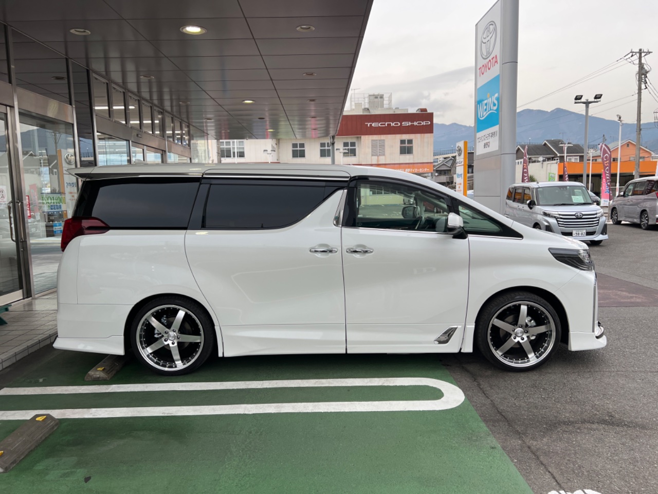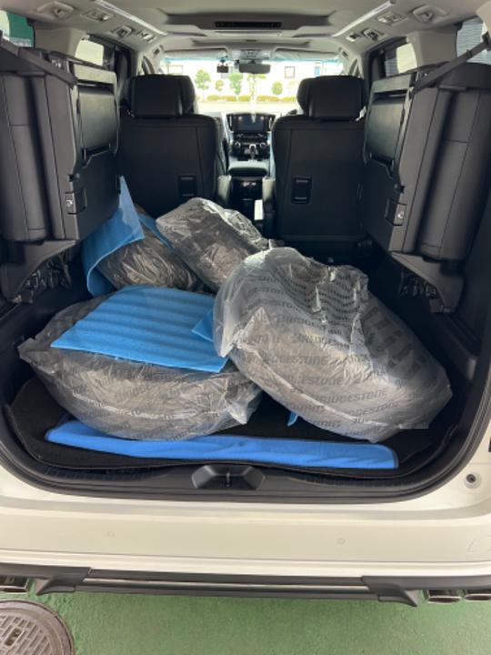 社外アルミホール(21インチ)とタイヤセットを装着しております。ノーマルホイール(18インチ)とタイヤのセットもあります。(タイヤ溝7mm)