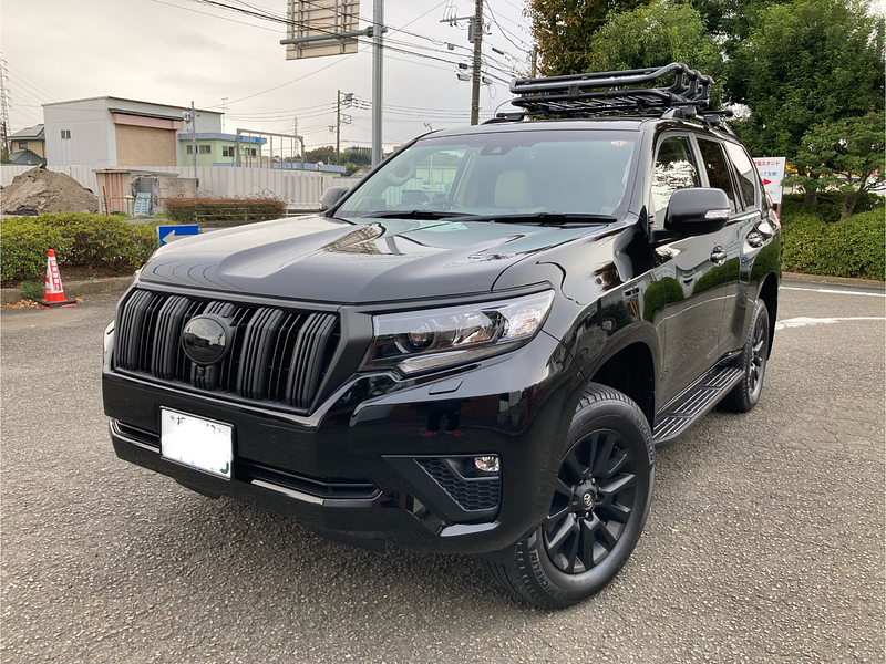 トヨタ ランドクルーザープラド TX Lパッケージ マットブラックエディション 禁煙車 整備記録簿あり ディスプレイオーディオ ※ナビキットあり 本革シート TV ブラインドスポットモニター オートクルーズ 3列シート スマートキー ETC サンルーフ バックモニター 全方位カメラ ドライブレコーダー 衝突軽減 7人乗り