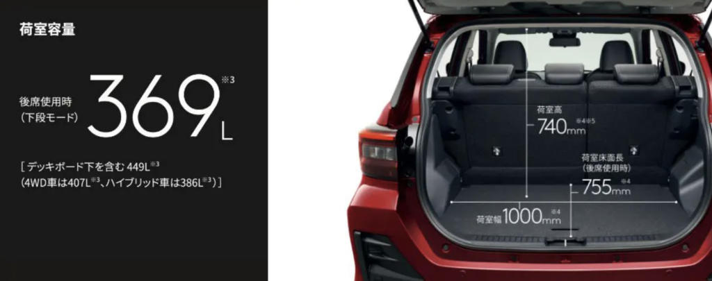 一方でライズは基本的な機能は同じですが、収納スペースや装備面での機能でより機能性の高さが目立ちます。